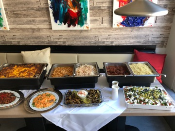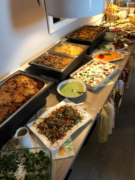 Unsere Buffetoptionen umfassen deutsche, türkische (halal) und internationale kulinarische Genüsse. Wir bieten verschiedene wunderbare Varianten an, beginnend ab 27,90 Euro bis hin zu unserer exklusiven Variante für 49,90 Euro. Jede Option beinhaltet eine Fülle von Vorspeisen, drei Hauptgerichte (eines davon vegan oder vegetarisch) und natürlich zwei verschiedene Desserts.